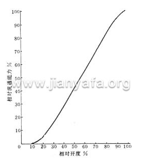 減壓閥的調節特性是由閥內部件的結構決定的,所謂調節特性是指流過閥門介質的相對流通能力與閥門相對開度的關系,相對流通能力是閥門某一開度時流通能力與全開時流通能力之比,相對開度是閥門某一開度與全開度之比〔1〕。減壓閥的調節特性如圖3所示。