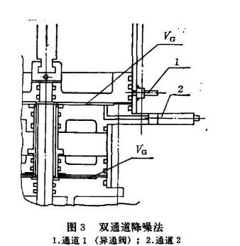采用異通閥降噪的方法,存在著閥門開啟過程的速度較慢、VG值小較難控制的缺點。但從設計分析和試驗實踐來看,前者可調整異通閥進氣阻尼流道截面的大小,達到噪聲與速度相互適應的程度。后者可提高制造水平來控制各道加工質量,可用調整墊以獲得較小的 VG值。能滿足這二個條件則此方法是適用的。